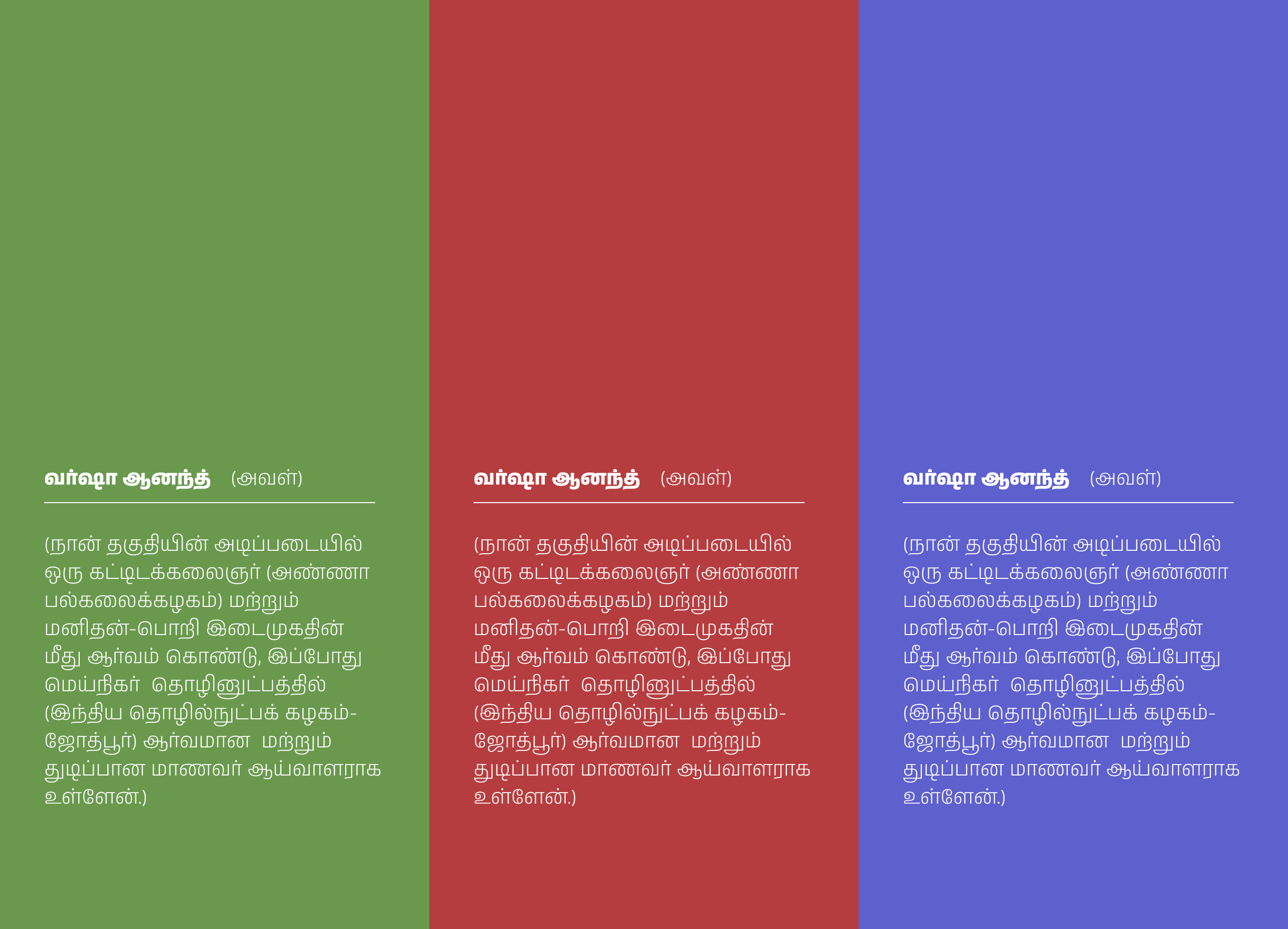 We had to typeset our name and a short bio in our mother script for our mobile phones. Was a challenging exercise because finding a typeface that had all the weights right in the native script was really hard.